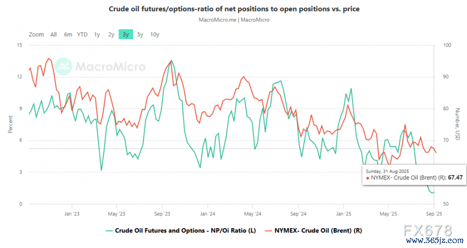 近期原油期货和期权净多头与未平仓合约比率(NP/Oi)抓续下降,现在通晓在1.1傍边,这一下降反应出空头头寸占比高潮,主要原因是新卖盘合约投入市集。该动向意味着市集对下行风险的对冲加多,以及对油价下降的投契四肢增多。