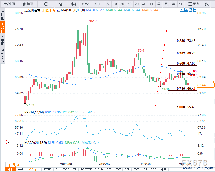 MACD柱状图仍处于负值区间,标明短期挪动平均线动能依旧看跌,强化了油价后续疲软的预期。
